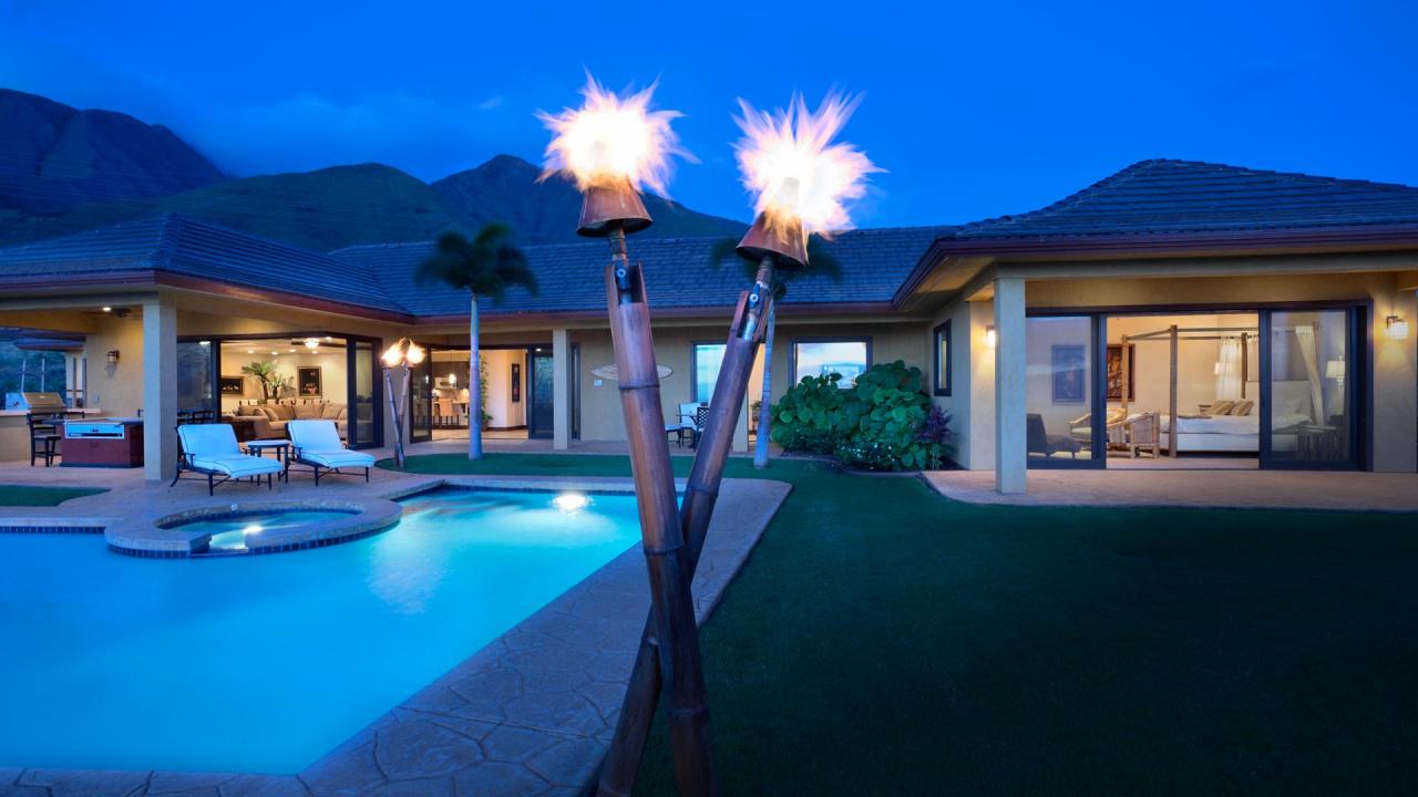 El nivel inferior se compone de una gran bodega, control de temperatura, el estado de la técnica de proyección de 35 mm de teatro, un gimnasio real, suite de un dormitorio de huéspedes y piscina climatizada familiar al lado. Grandes jardines de altos árboles y zonas verdes. La finca dispone de piscina, spa, cancha de tenis iluminada, cocina al aire libre, multi-nivel de las cubiertas que rodean la estructura, además de la laguna más singulares con cascada y muelle.